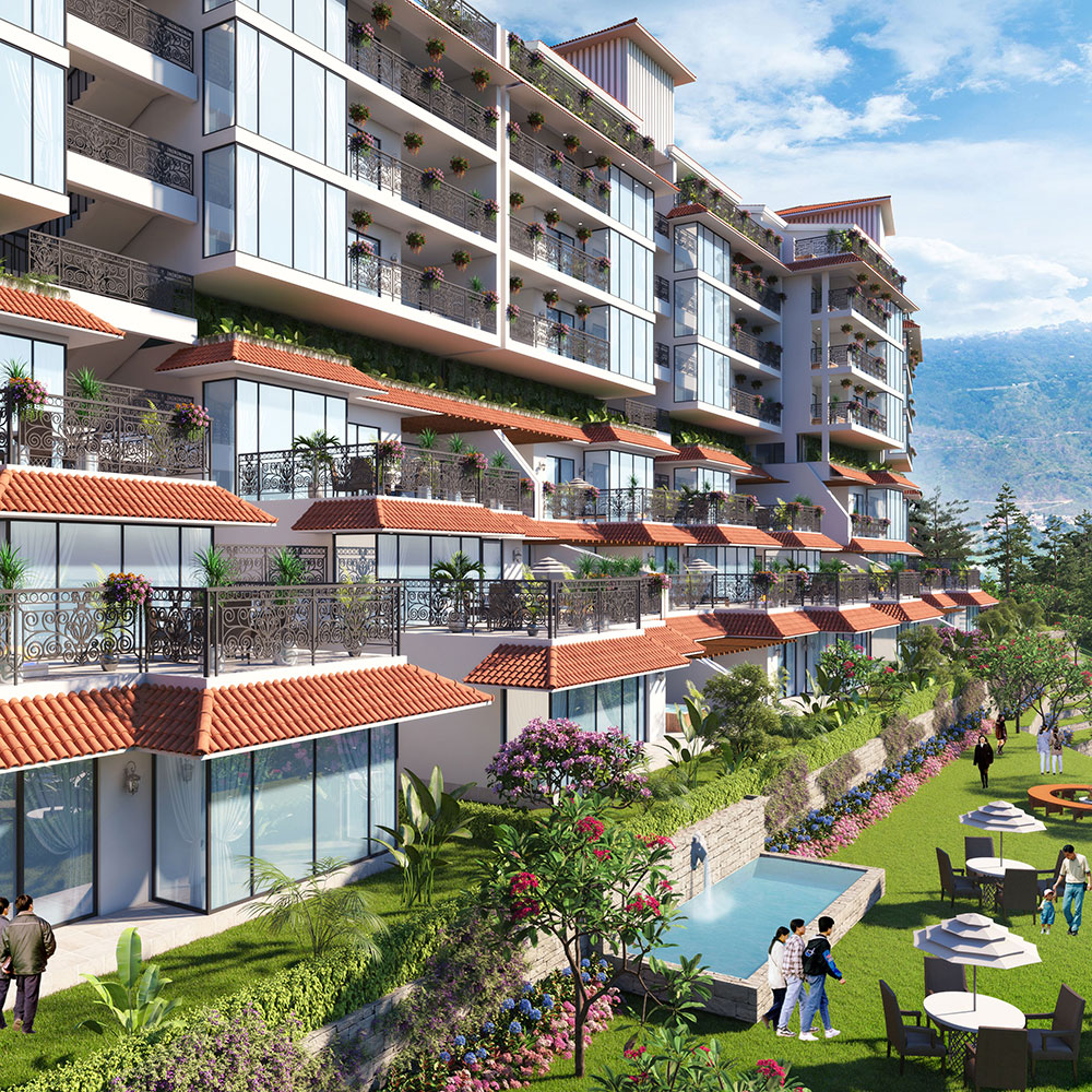 Carnation Hills has a stepped design to complement the setting of the project. You are literally at the foothills of Himalayas.